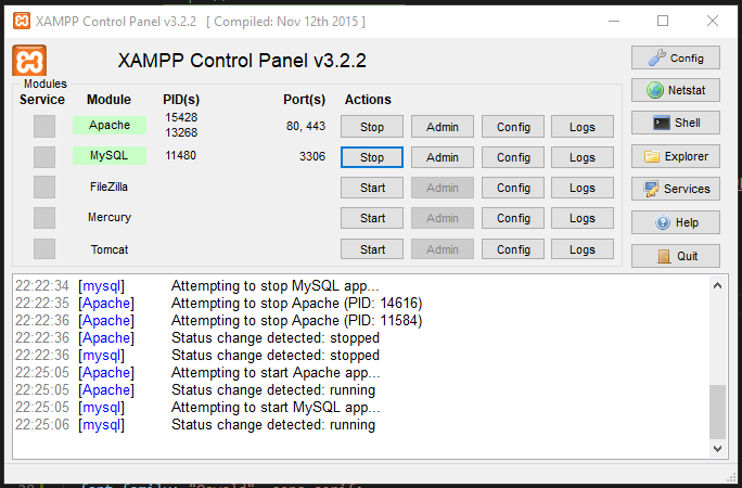 Se tutto è andato per il verso giusto le scritte “Apache” e “MySQL” dovrebbero avere sfondo verde, così: