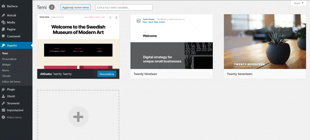 A questo punto ci troviamo nella schermata che ci mostra i temi attualmente installati sul nostro sito.