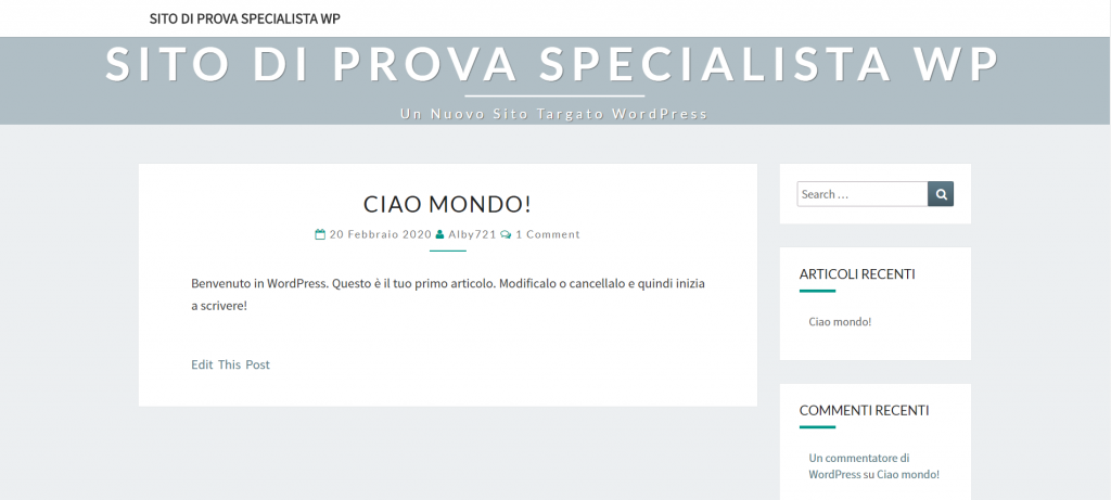 Ora se torniamo nel frontend (cliccando sulla casetta in alto a sinistra) possiamo vedere che il nostro sito è cambiato!