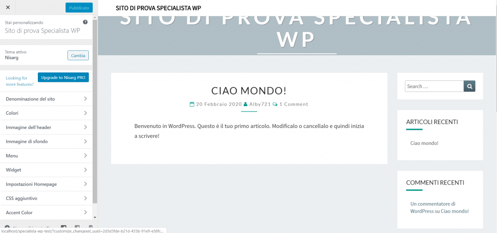 In WordPress è possibile personalizzare i temi attraverso la sezione “Aspetto-Personalizza“, presente nella barra laterale.