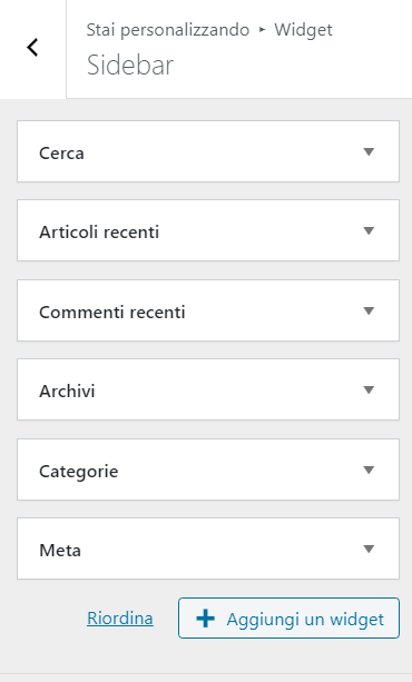 Questo tema ci consente di inserirli nella sidebar, ma anche questo punto sarà trattato successivamente e approfonditamente, perciò per ora possiamo lasciare tutto così com’è!