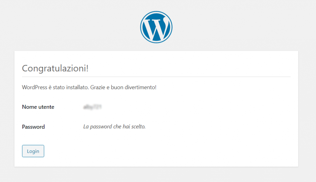 Complimenti!!! Hai appena creato il database per il tuo sito WordPress!