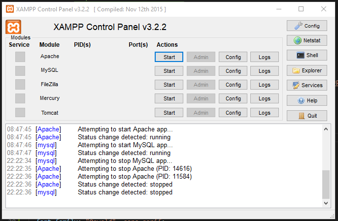 Per avviare XAMPP ti basterà cliccare sulla sua icona e una volta aperto il software cliccare su “Start” in corrispondenza di Apache e MySQL.