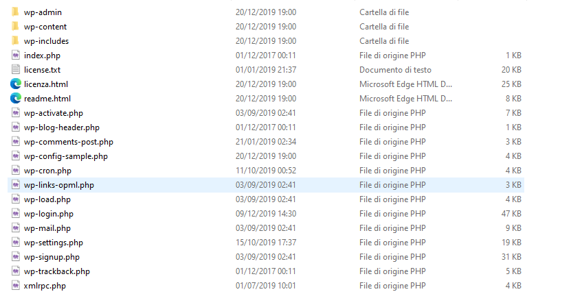 Terminata l’estrazione avrai una cartella chiamata “wordpress“.