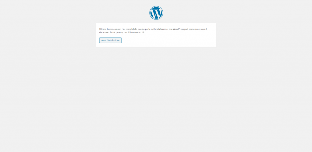 WordPress si congratula con noi per aver inserito correttamente i dati del passaggio precedente, quindi non ci resta che cliccare su “Avvia installazione“