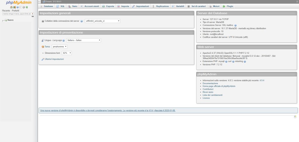 Accedere a phpmyadmin è molto semplice, ti basterà scrivere “localhost/phpmyadmin” nella barra di ricerca del tuo browser.